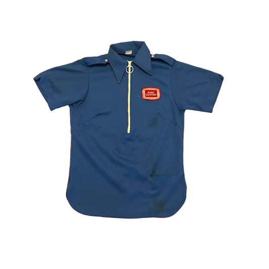 70/80's King Cotton Meats Blue Zip Up Collared Shirt - Small - 18" x 25"