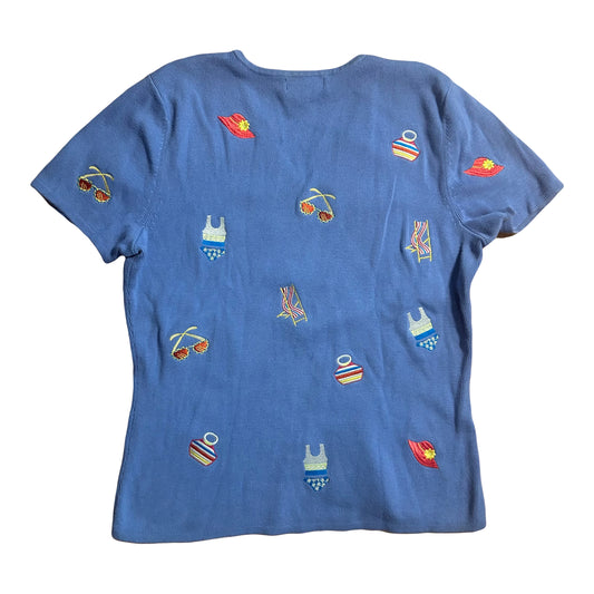 Carole Little Cotton Beach Embroidered V Neck Shirt Top - Small / Medium - 19” x 22”