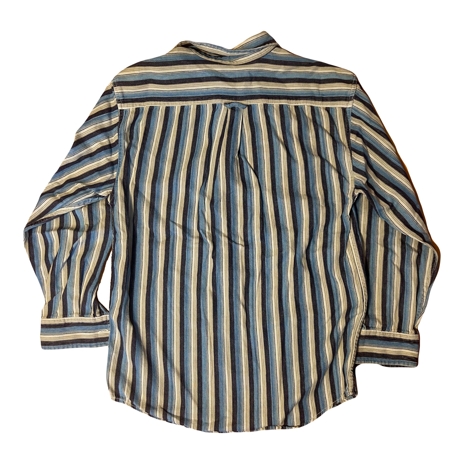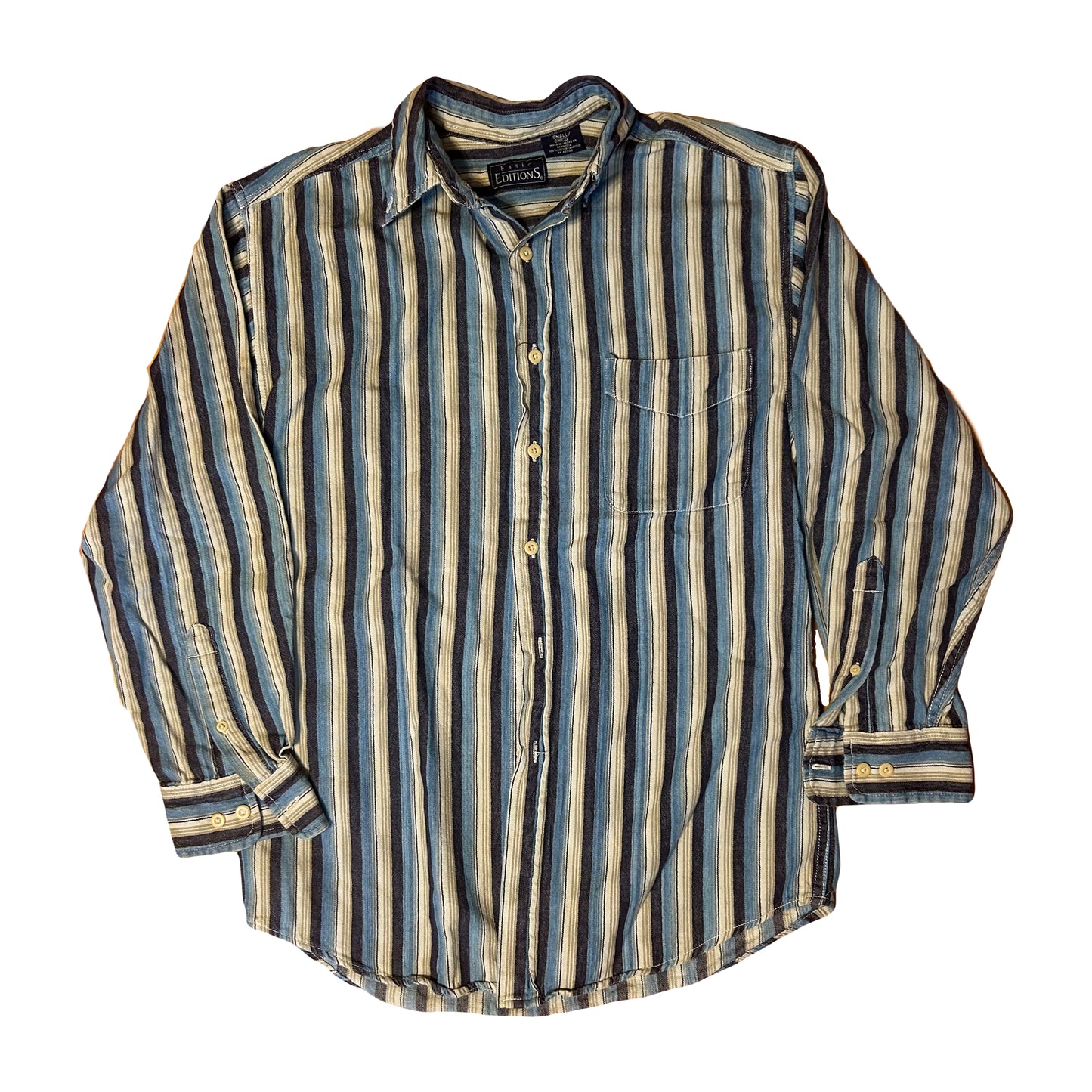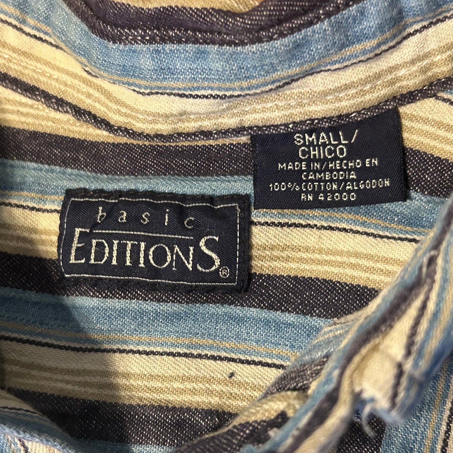 Basic Editions Striped Button Down Up Formal Collared Cotton Shirt - Small - 19” x 28”
