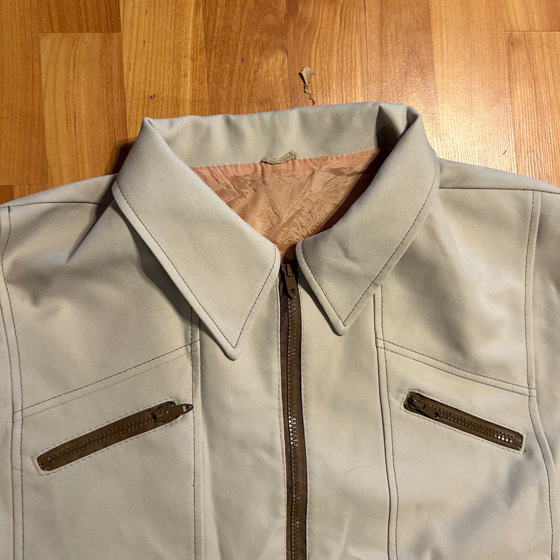 70's Tan Lined Zip Up Windbreaker Jacket - XLarge - 24" x 27"