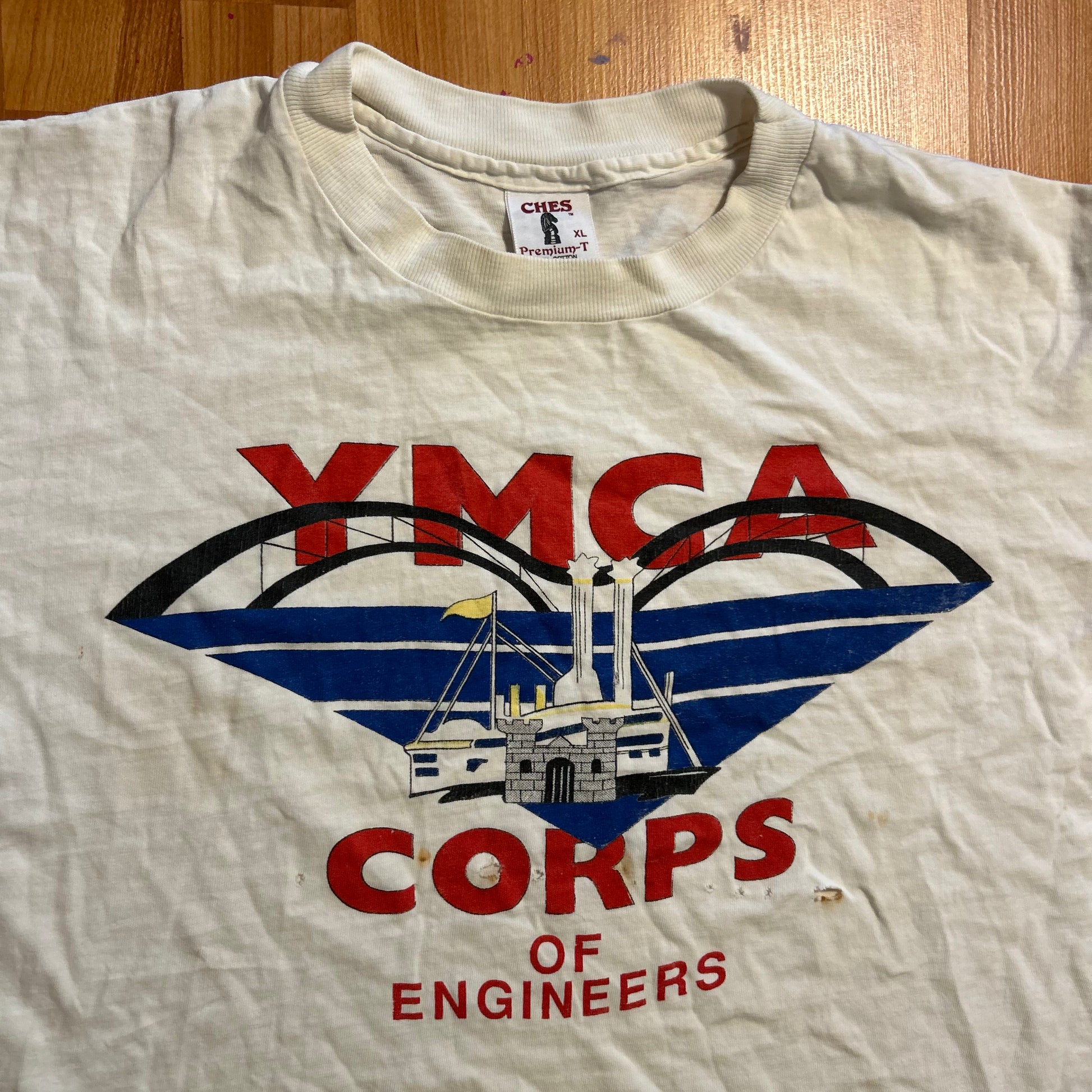 90's YMCA Engineering Corps White Tshirt - Large - 23.5" x 26.5"
