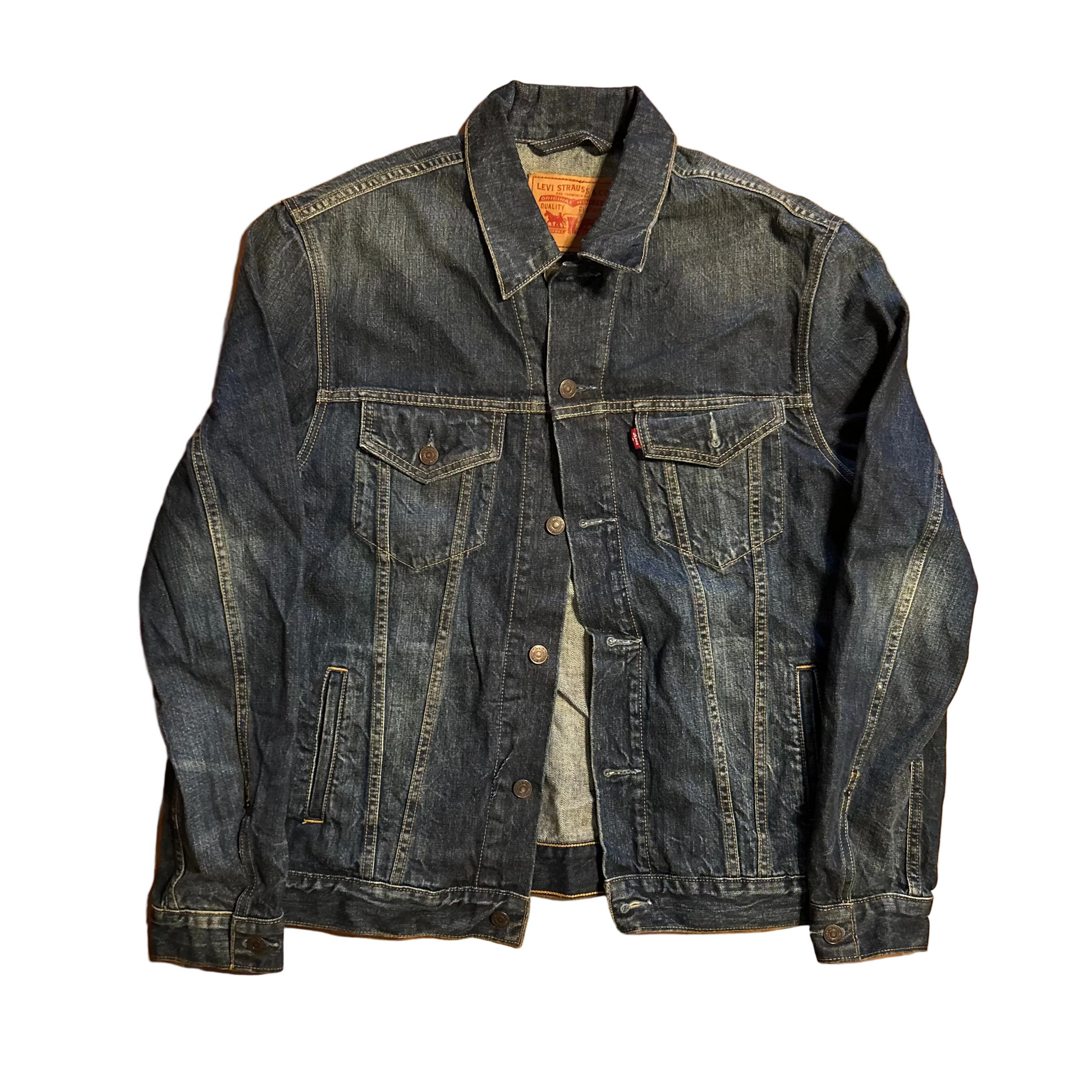 Levi's Dark Wash Blue Jean Denim Button Up Trucker Jacket - Medium - 21.5" x 26"