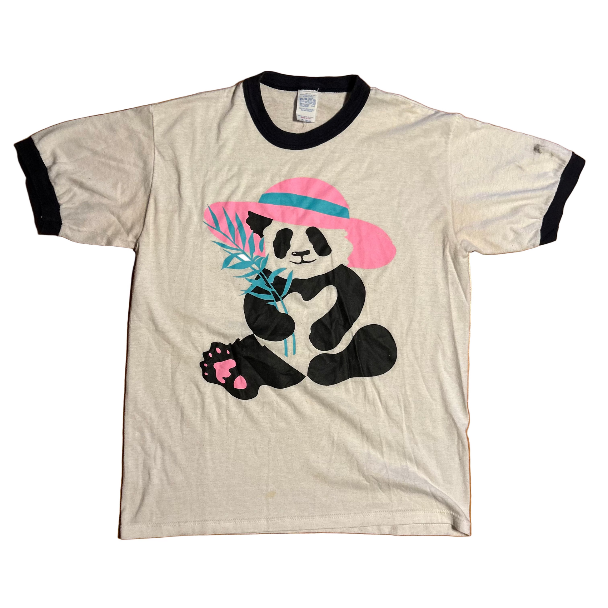 80's Panda White Ringer Tshirt - Small - 18.5" x 25"