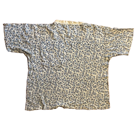 80/90’s Floral Patterned White Blue Pocket Tshirt - Large - 23.5" x 25"