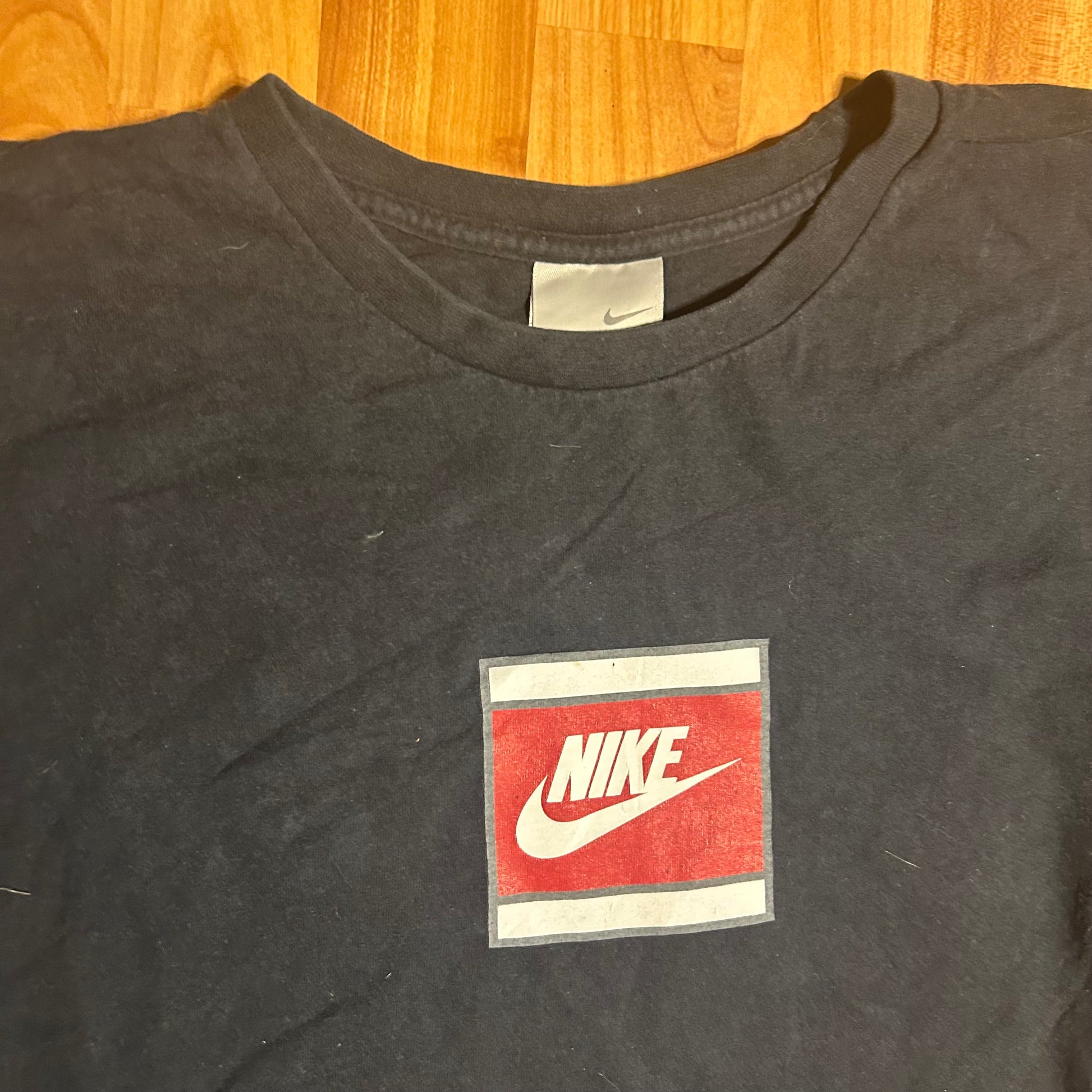 00's Grey Tag Nike Red Logo Black Tshirt - XLarge - 25” x 30”