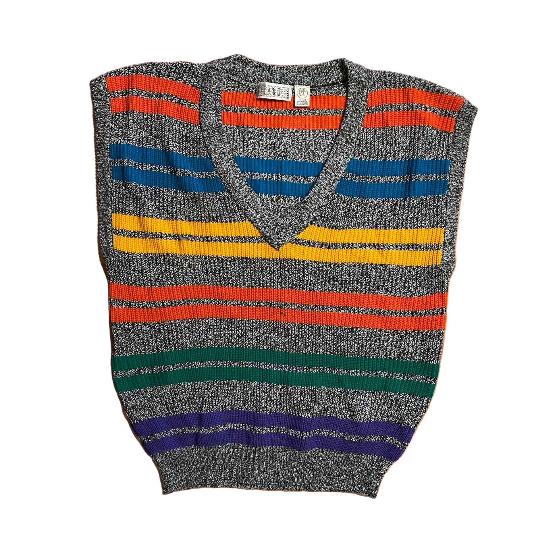 Gitano Acrylic Color Blocked Grey Yellow Orange V Neck Sweater Vest - Large - 23" x 28"